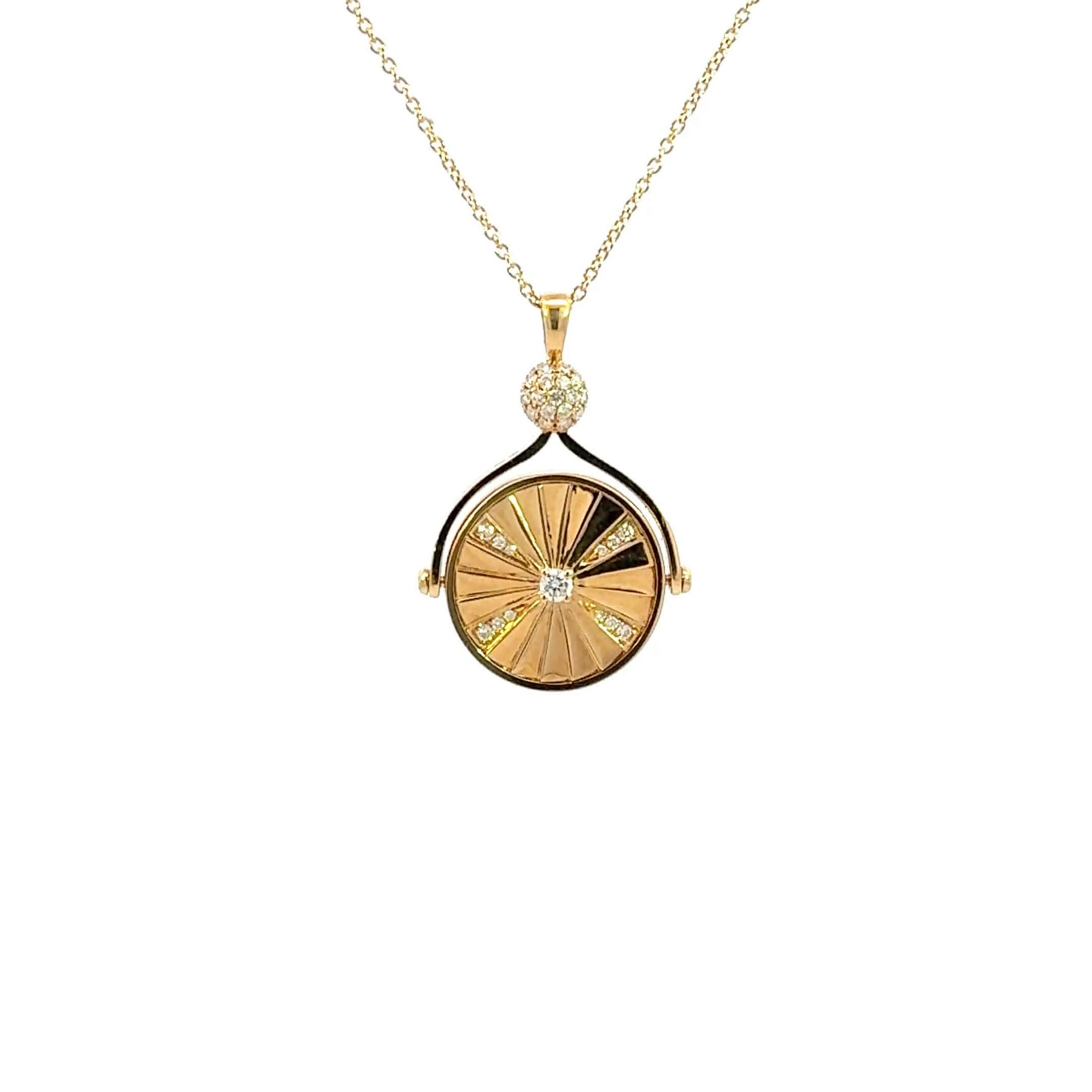 Double sided medallion pendant. Yellow gold and diamonds on one side. Mother of pearl on opposite side