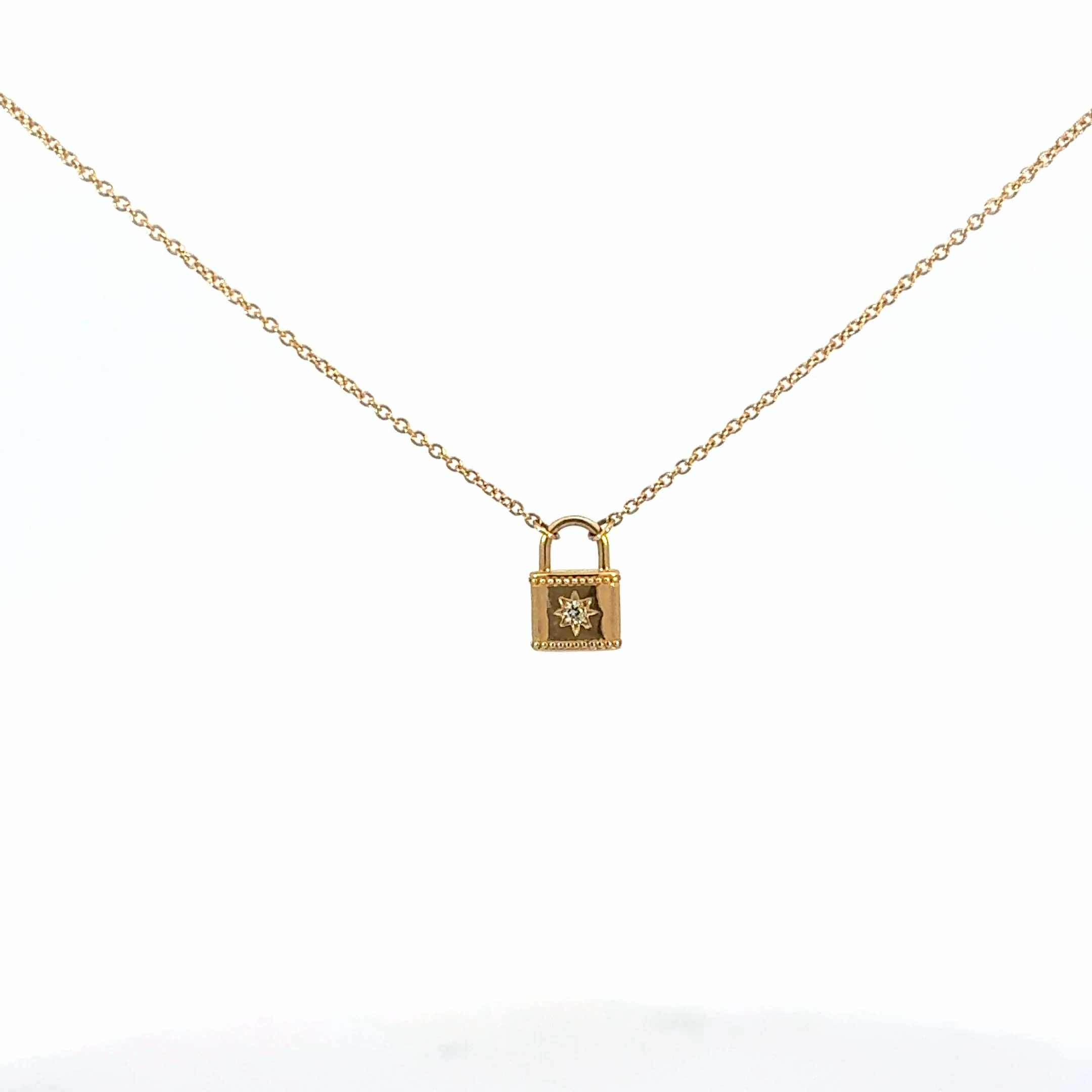 Gold and diamond lock necklace