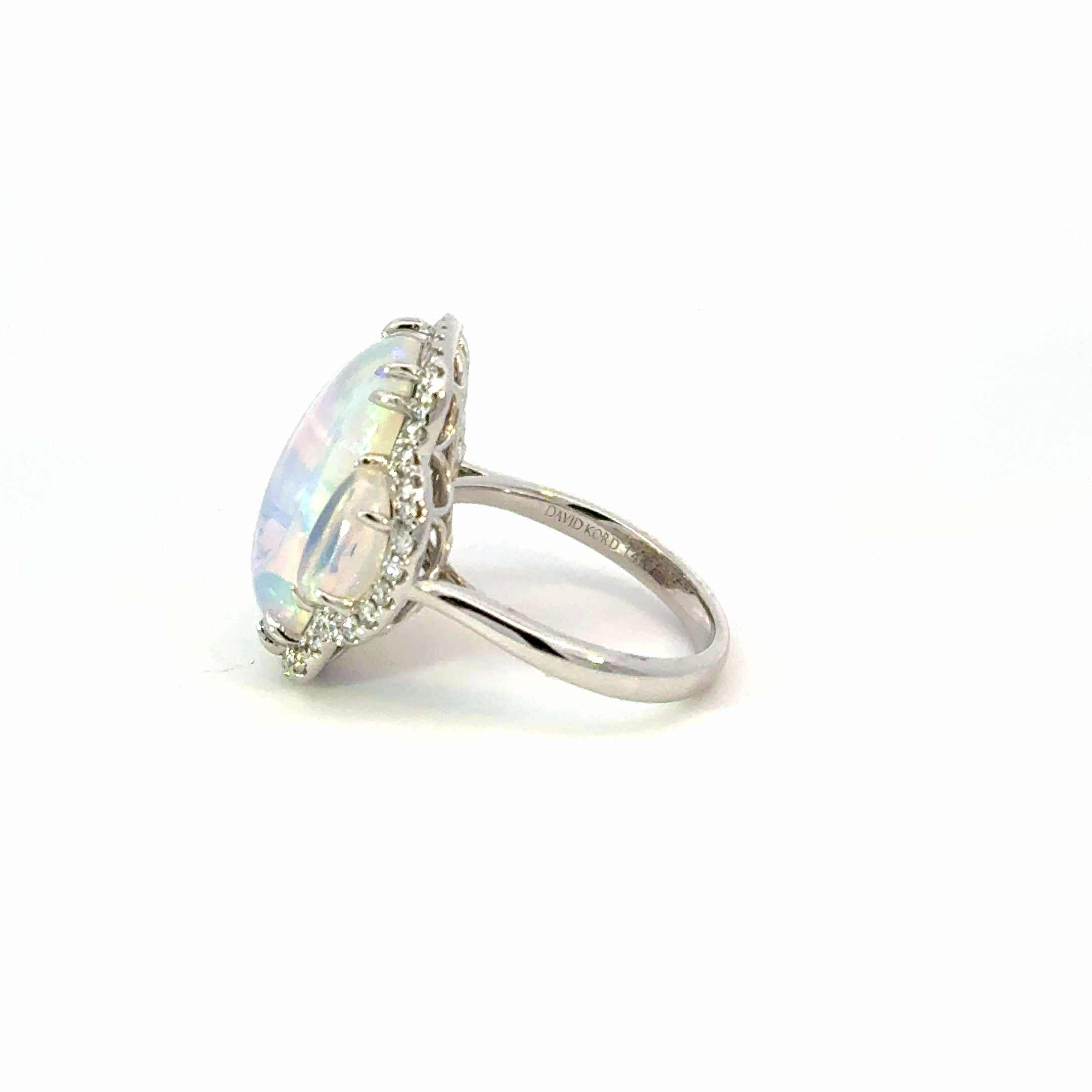 White Gold 14 Karat Fashion Ring Size 6.75 With 3 = 6.28 cttw Opals And 40 = 0.49 cttw Diamonds